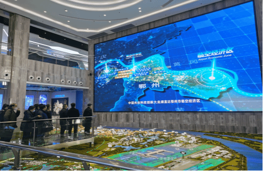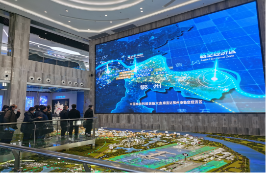 调研组一行先后参观调研了临空经济区招商展示中心、鄂州市城市展示馆、葛店招商展示中心、光谷联合科技城并座谈交流。
